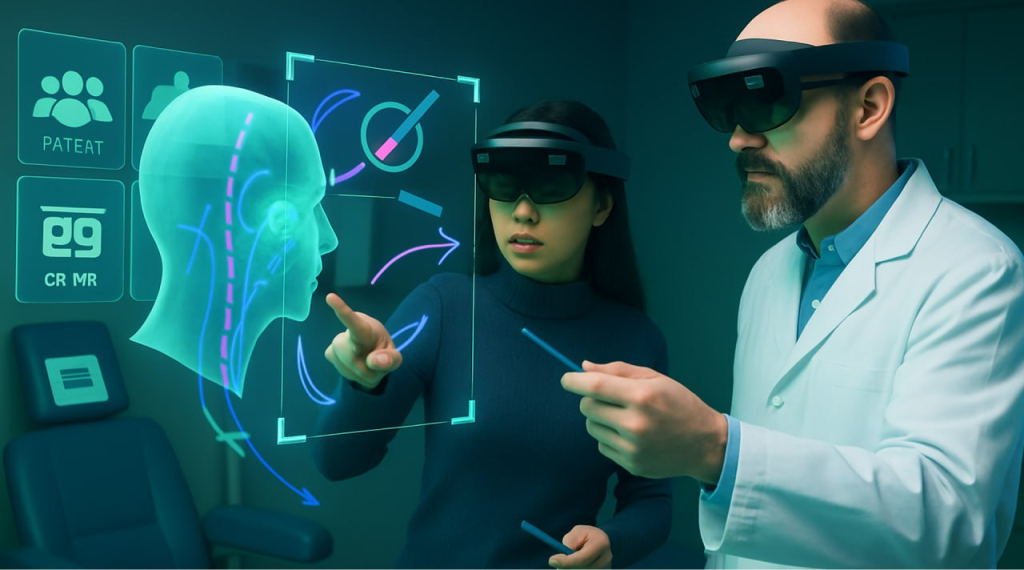 AR переносит знания в практику без риска. Студенты-медики через AR-очки изучают анатомию, видят органы в 3D и могут «оперировать», не трогая настоящего пациента.